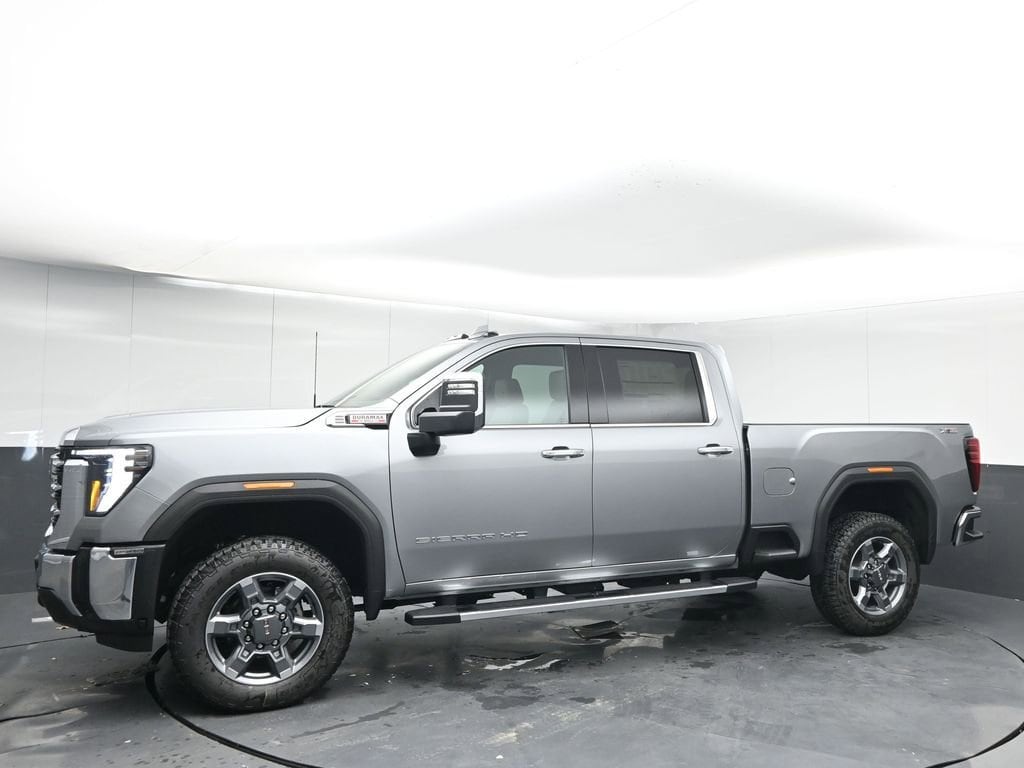 Sterling Metallic 2026 GMC Sierra 2500HD SLT 4WD 10-Speed Automatic Duramax 6.6L V8 Turbodiesel 10-Speed Automatic, 4WD, Dark Walnut/Slate Leather.